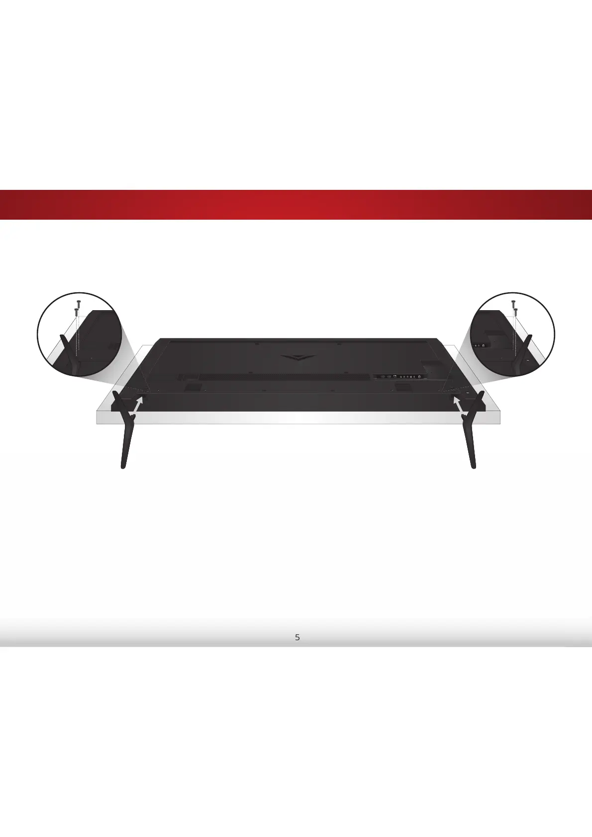 Insert the left and right stands into the base of the TV (the stands are identical).