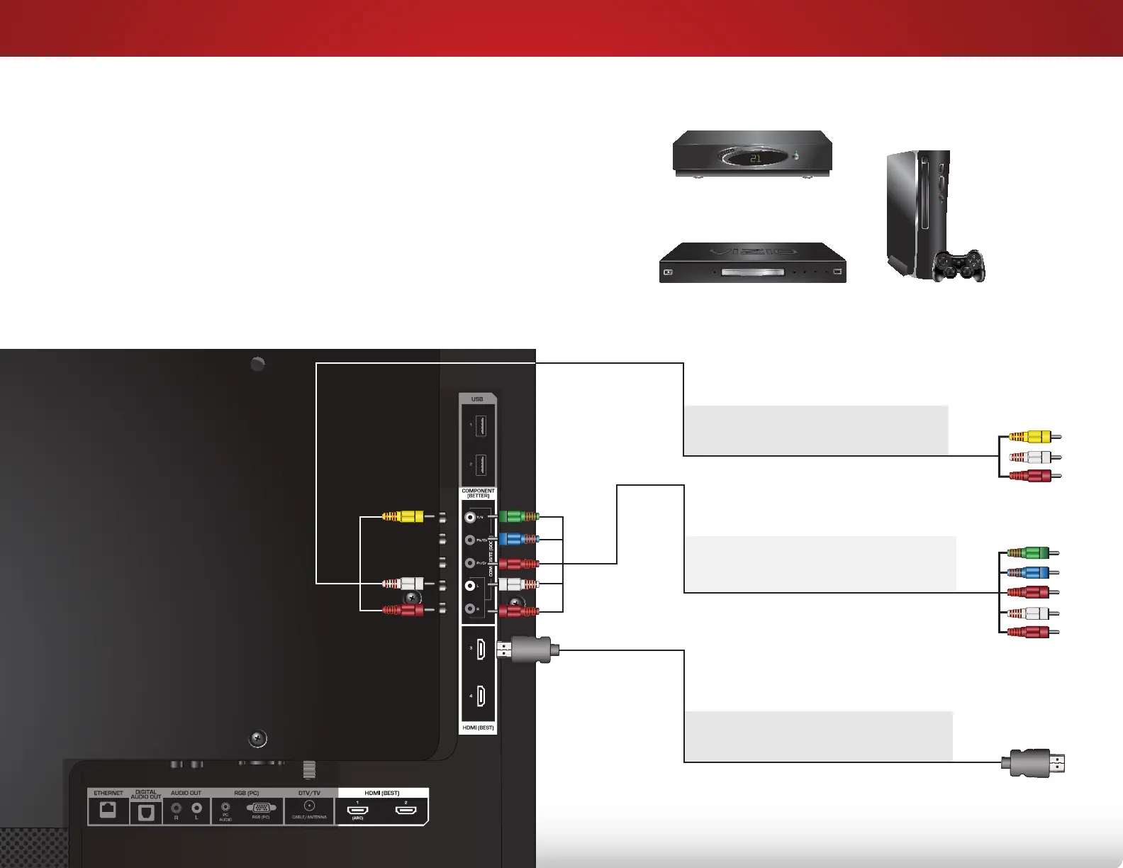 3. Connect the appropriate cable (not included) to the TV and