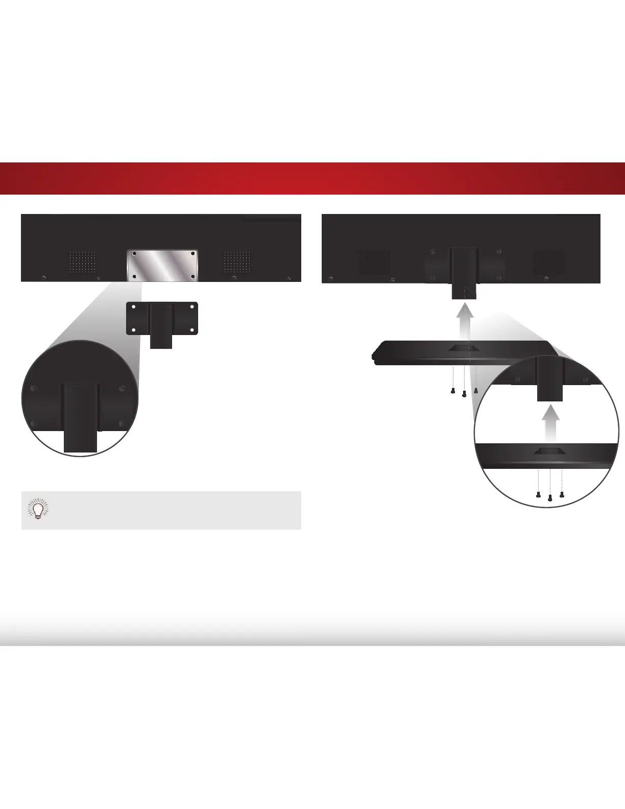 1. Align the neck piece with the bottom of the TV and slide it