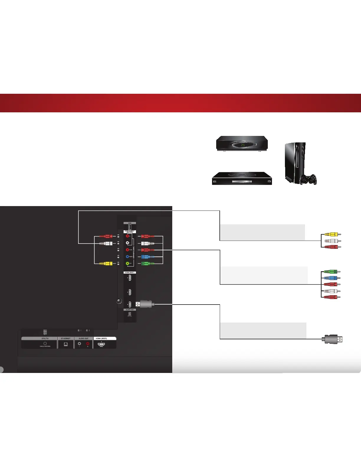 3. Connect the appropriate cable (not included) to the TV and