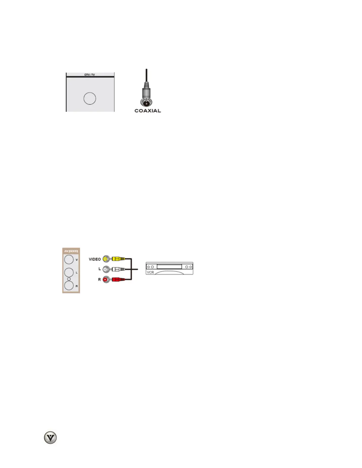 2. Connect the coaxial (RF) connector from your antenna or cable to the DTV/TV connector on your