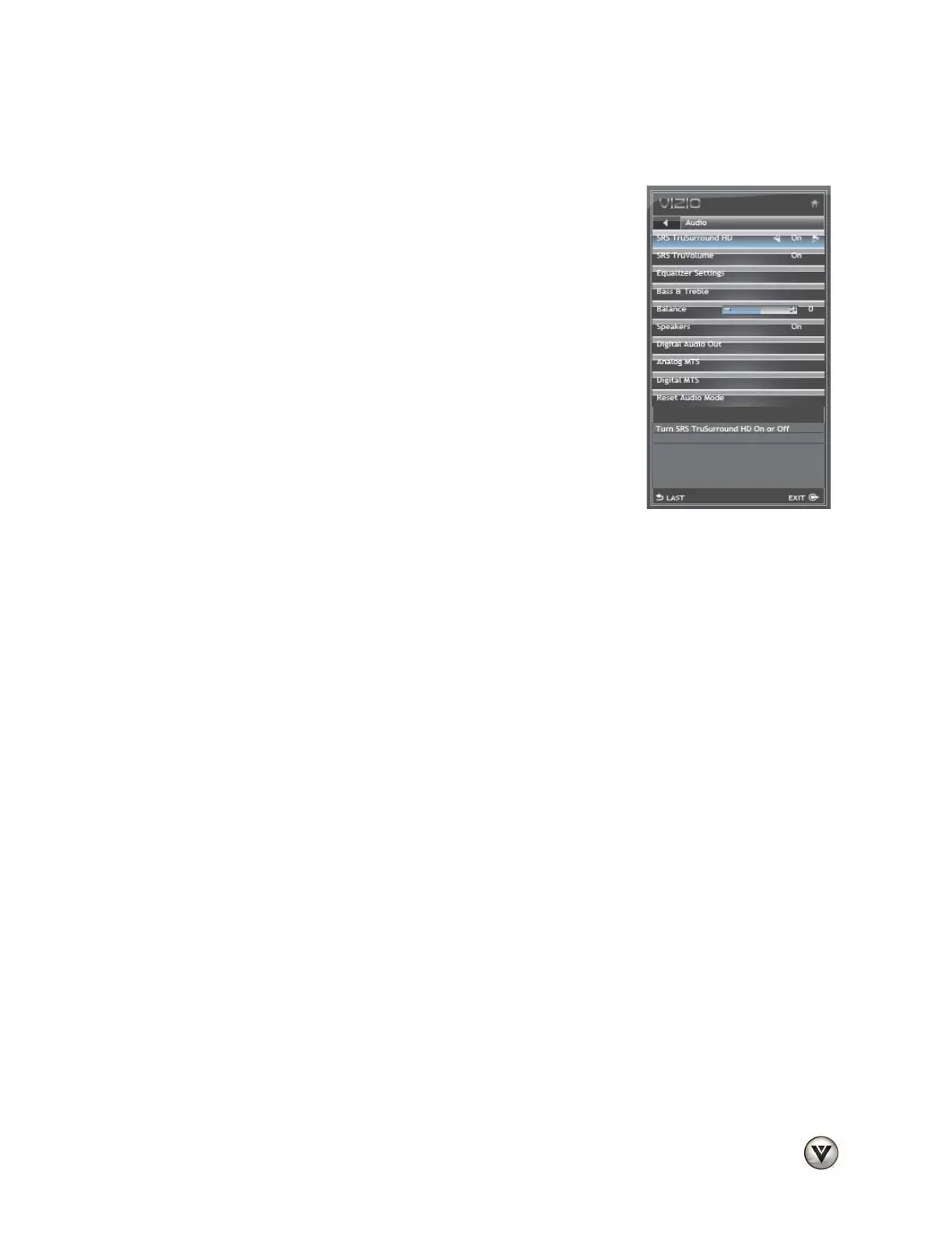 sound level. VIZIO recommends turning TruVolume off when
