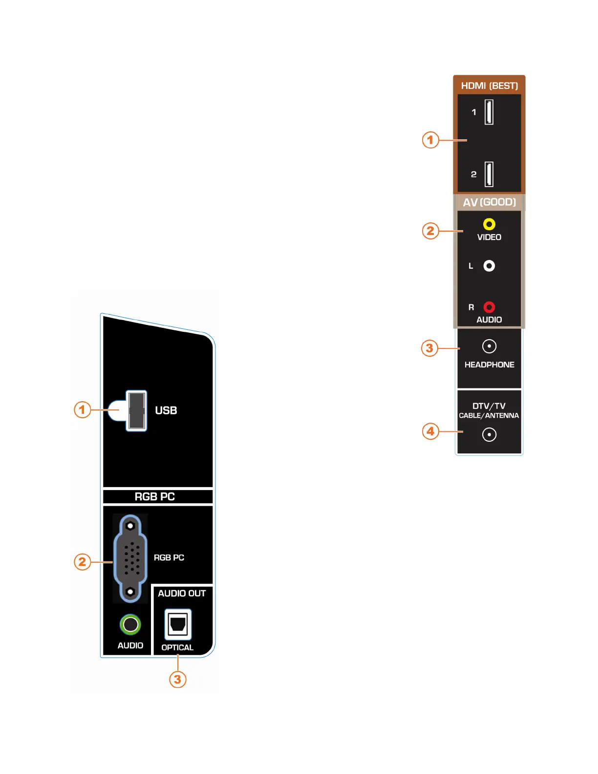 2. AV—Connect Composite video devices, such as a VCR or game console.