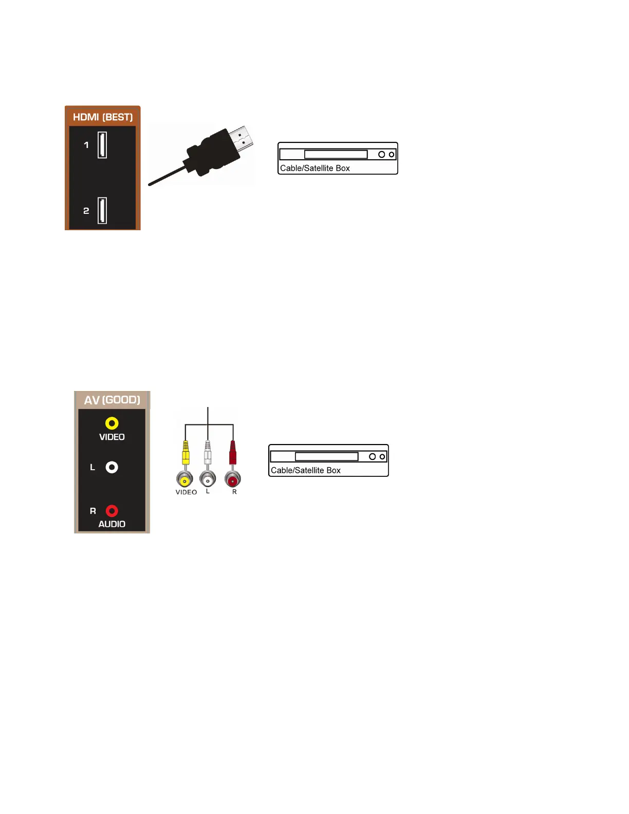 2. Connect the video cable (yellow) from your Set Top Box to the AV jack (yellow) on your HDTV.