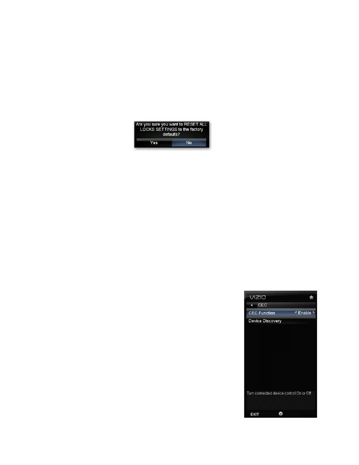 Return all Parental Control lock settings to factory default. A screen will come up to confirm your