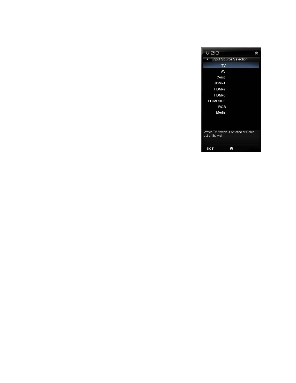 through the following options: TV, AV, Comp, HDMI-1, HDMI-2, HDMI-3,