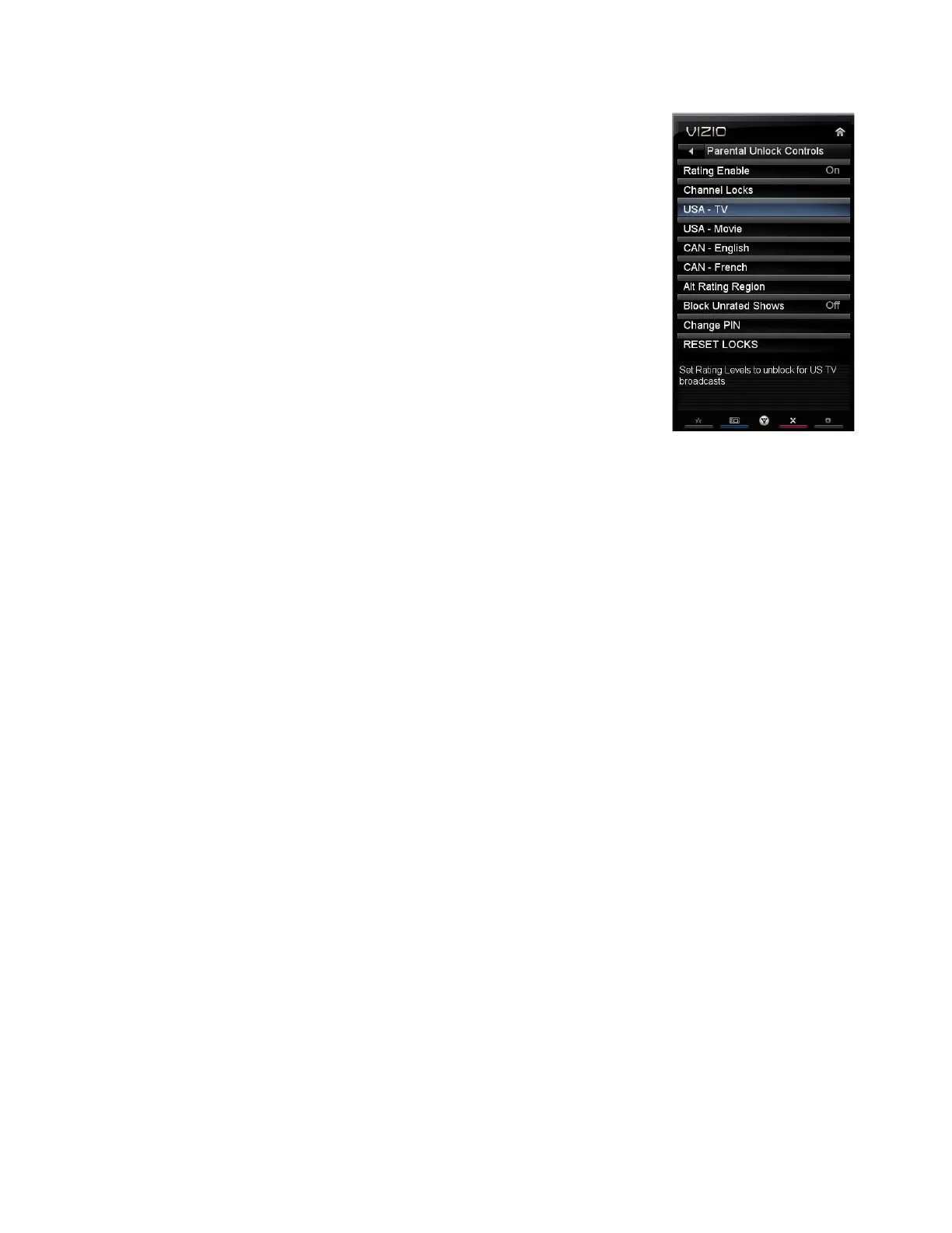 Note: When Rating Enable is OFF, the USA-TV Rating