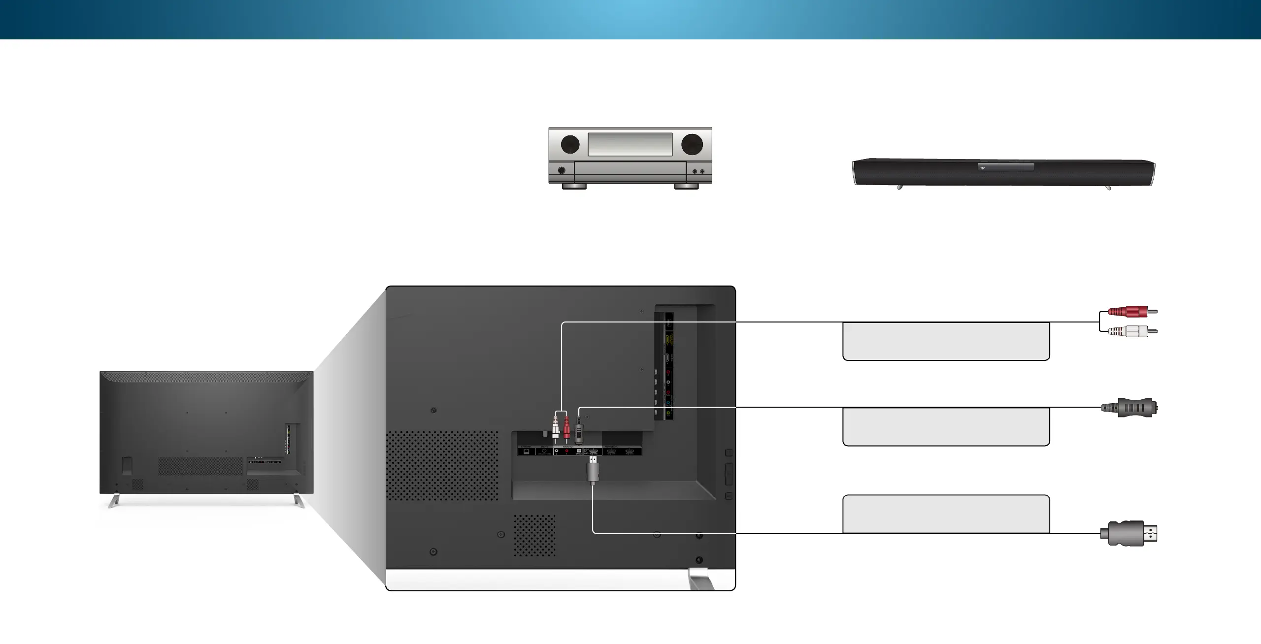 3. Connect the appropriate cable (not included) to the TV and the
