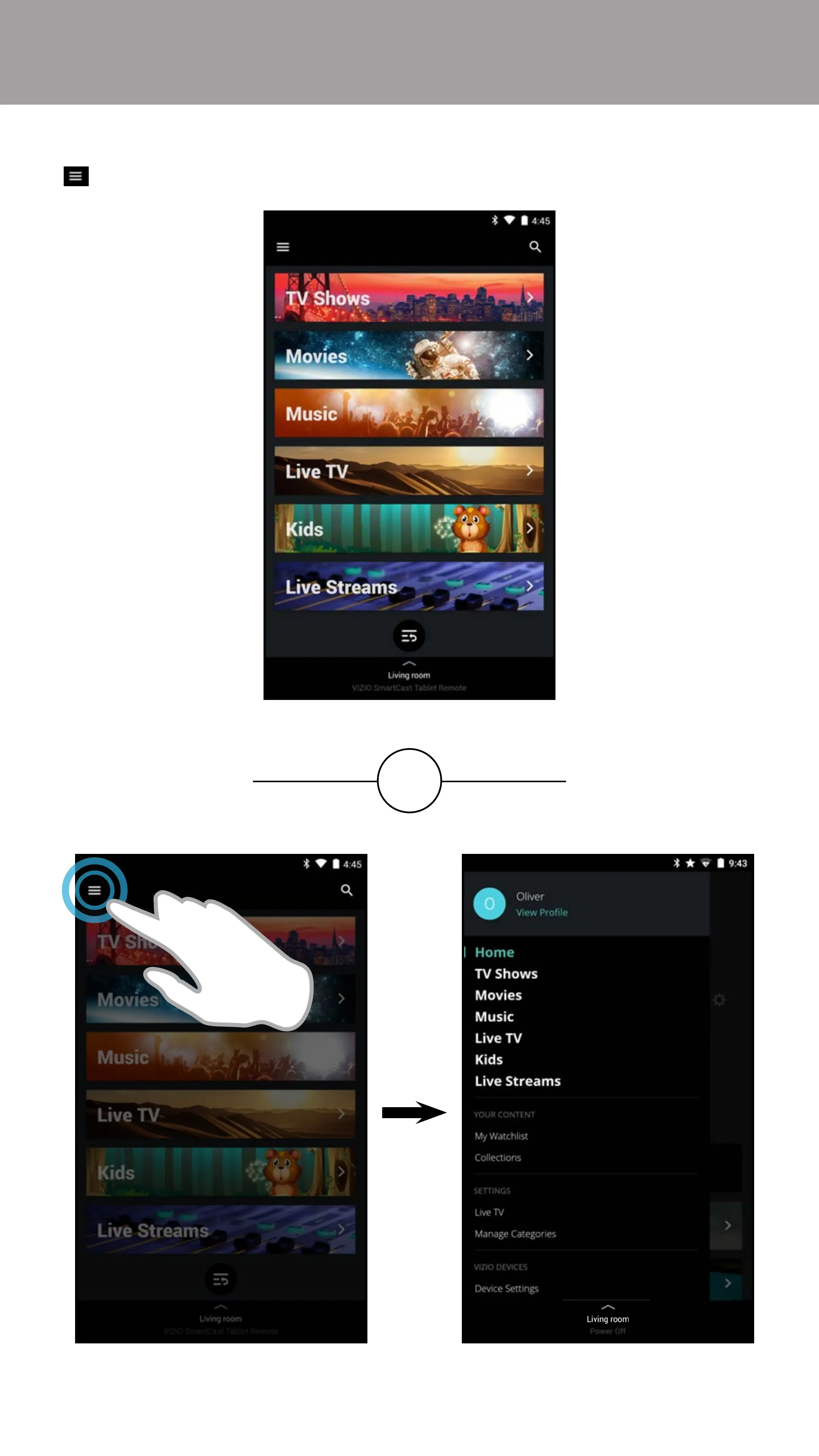 TV, Kids, and Live Streams. You can also access these categorizes by tapping the