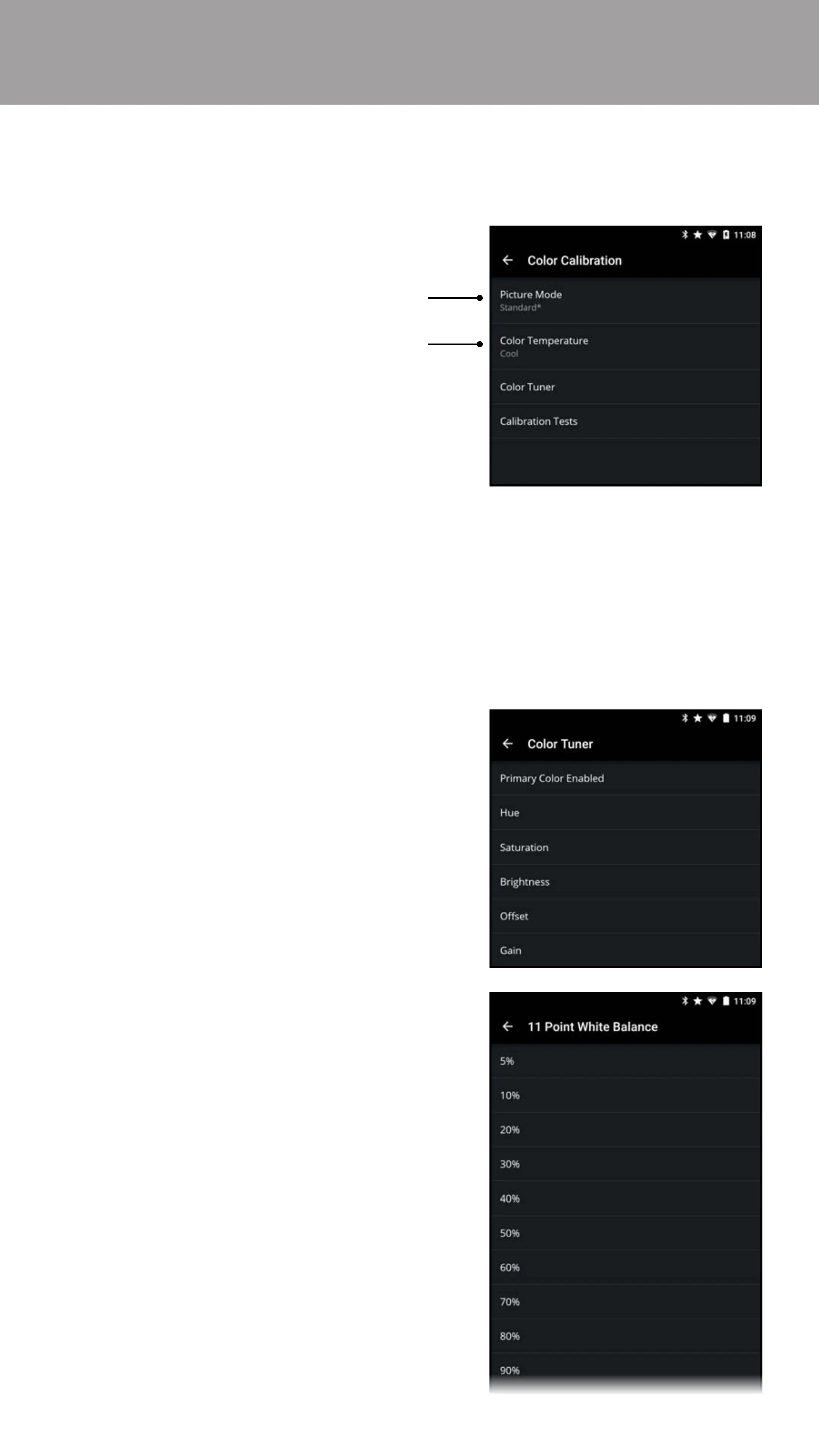 1. From the Color Tuner menu, tap