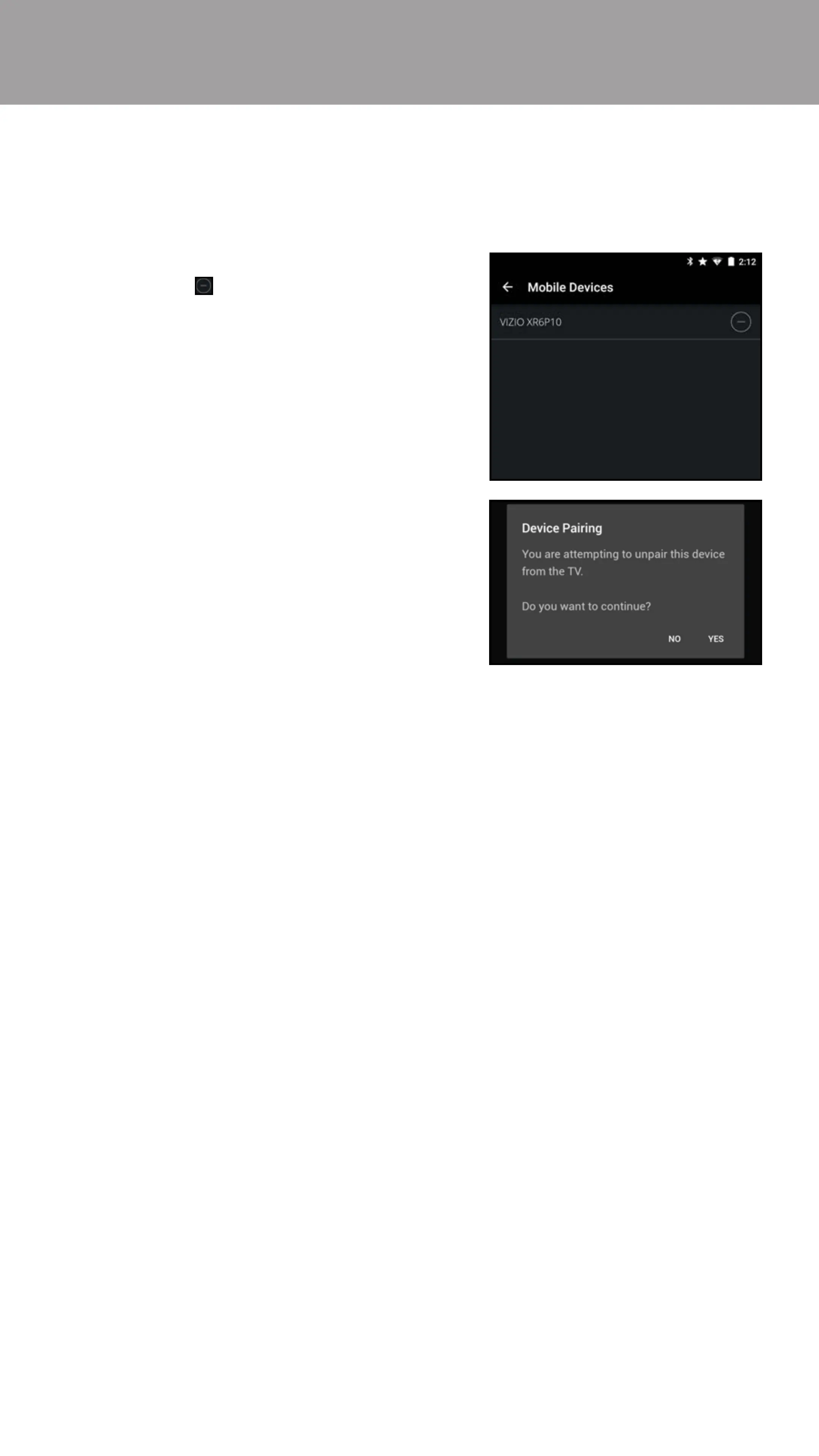 The Mobile Devices menu provides a list of mobile devices paired to the display.