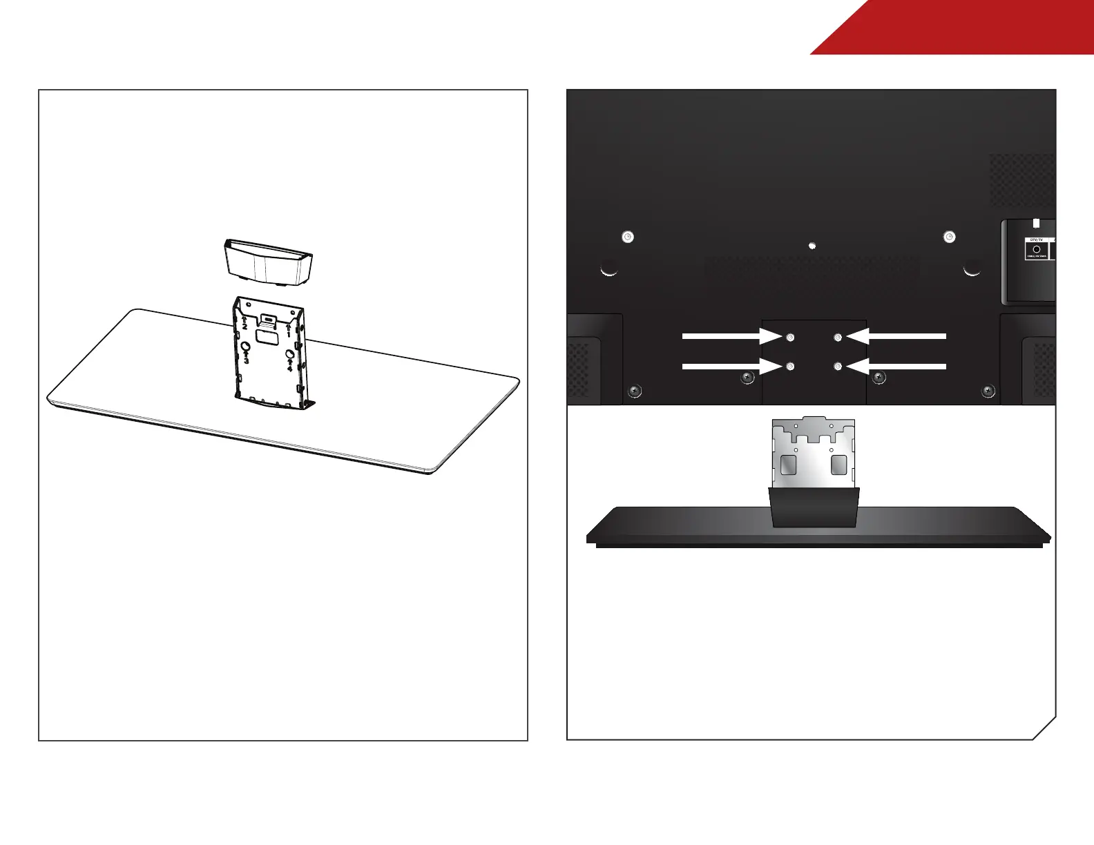 Insert the neck into the TV and tighten the four (4)