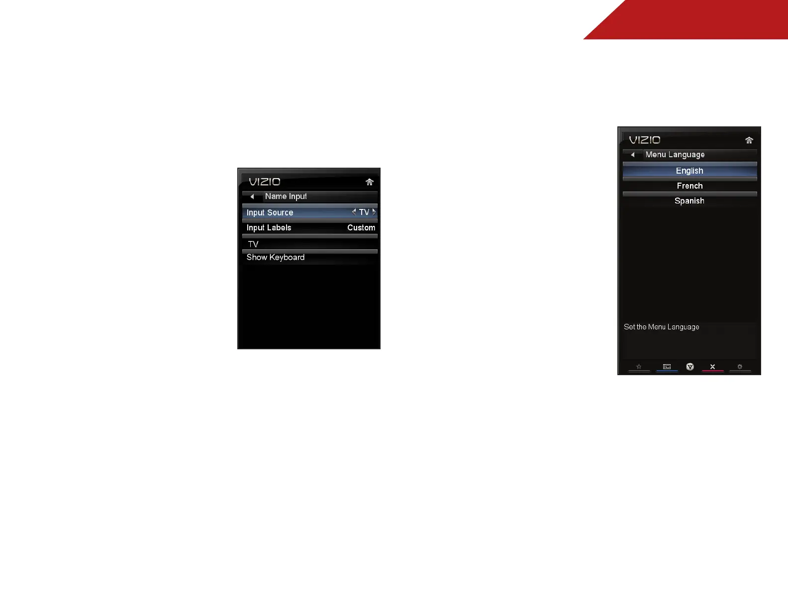 The Menu Language menu is