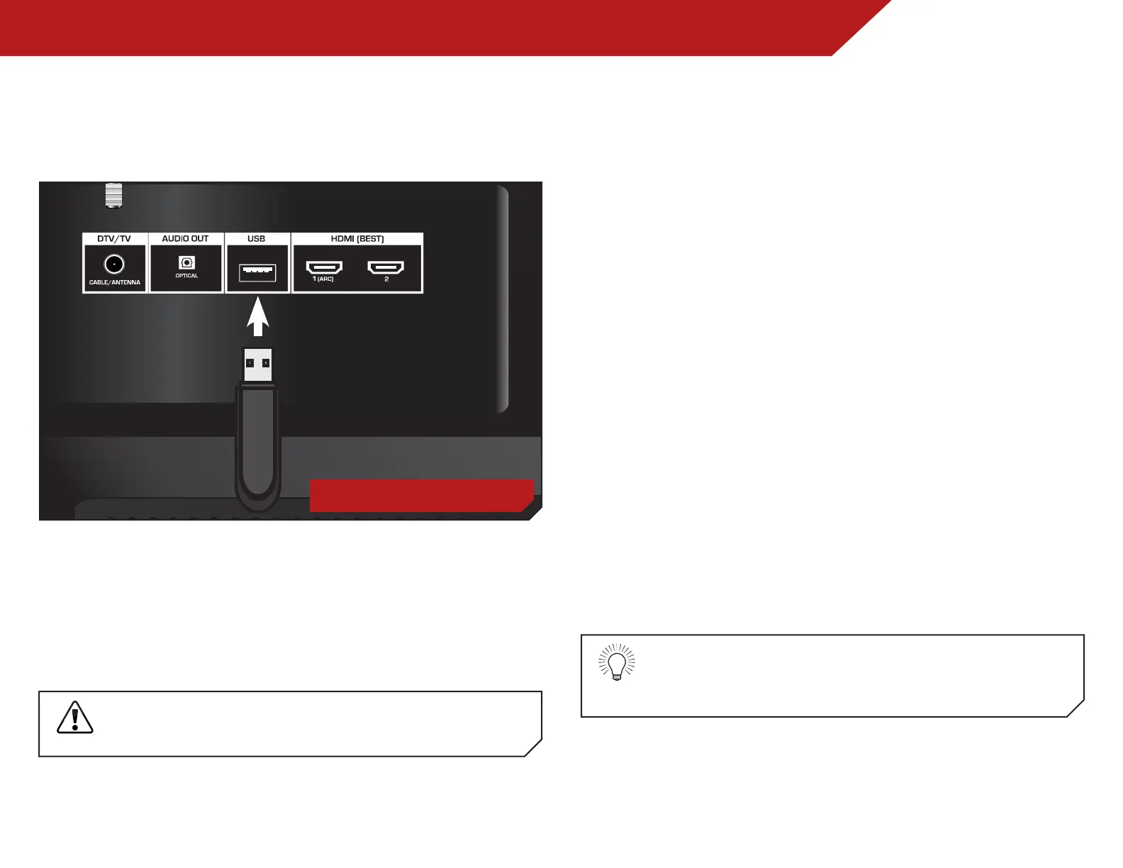 1. Turn the TV off. Connect your USB thumb drive to the USB port