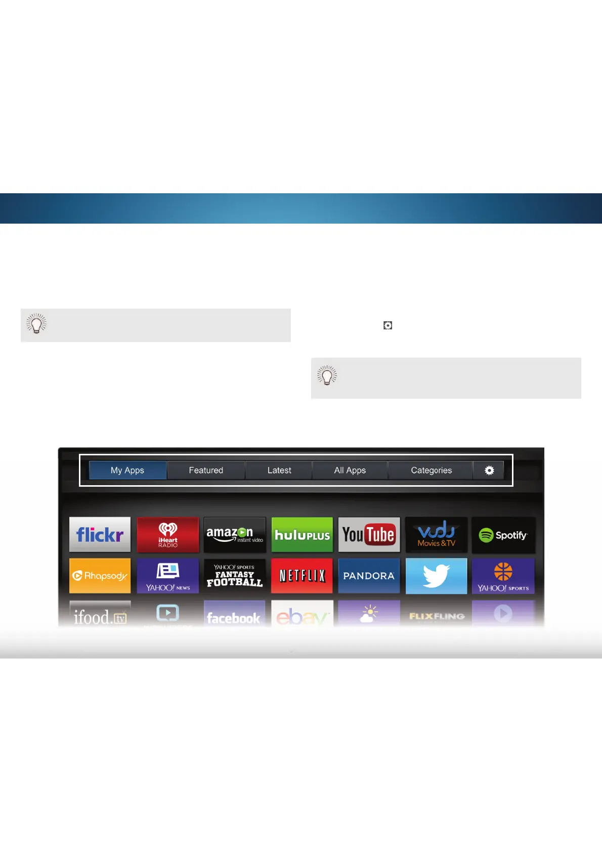 are already installed on your TV. The Apps on the first page are