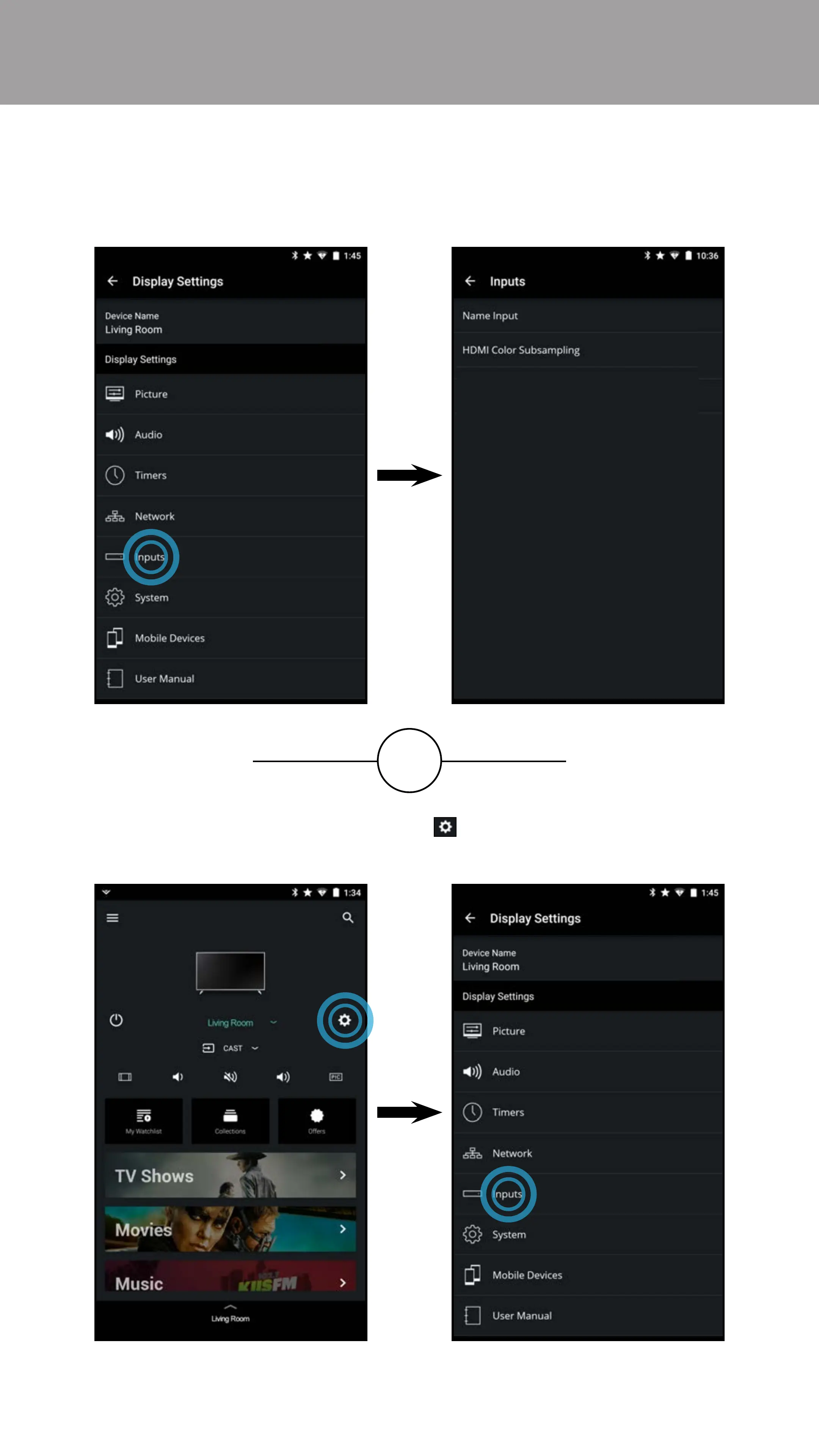 • From the Display Settings menu, tap on Inputs. The Inputs menu