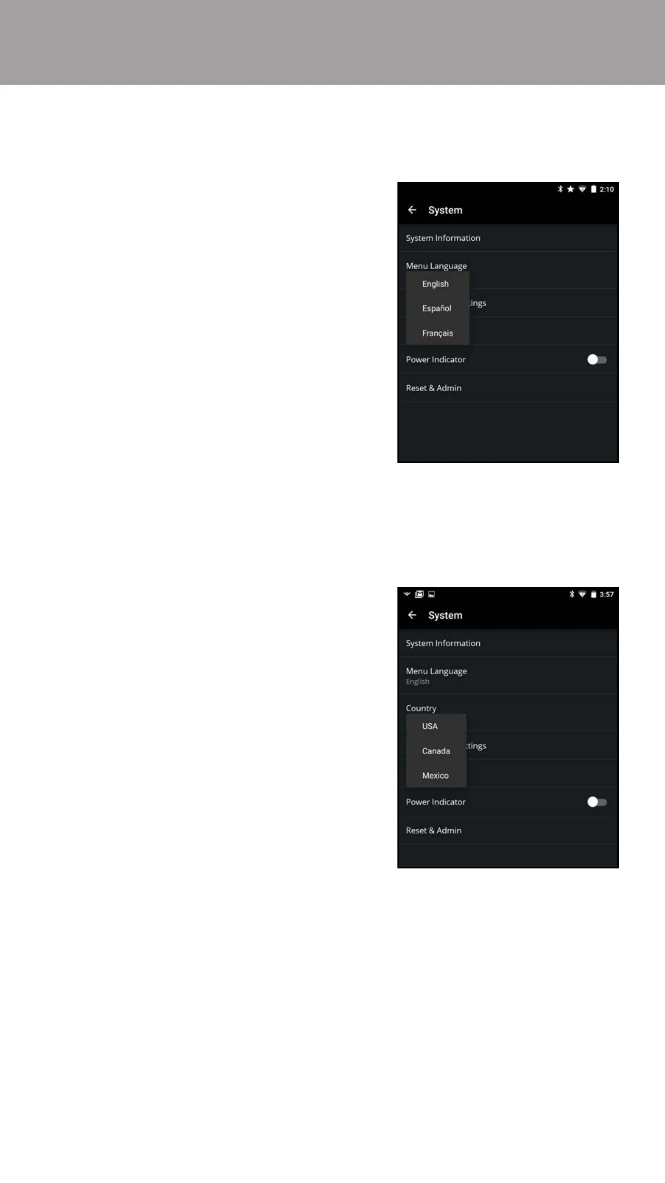 Menu Language.