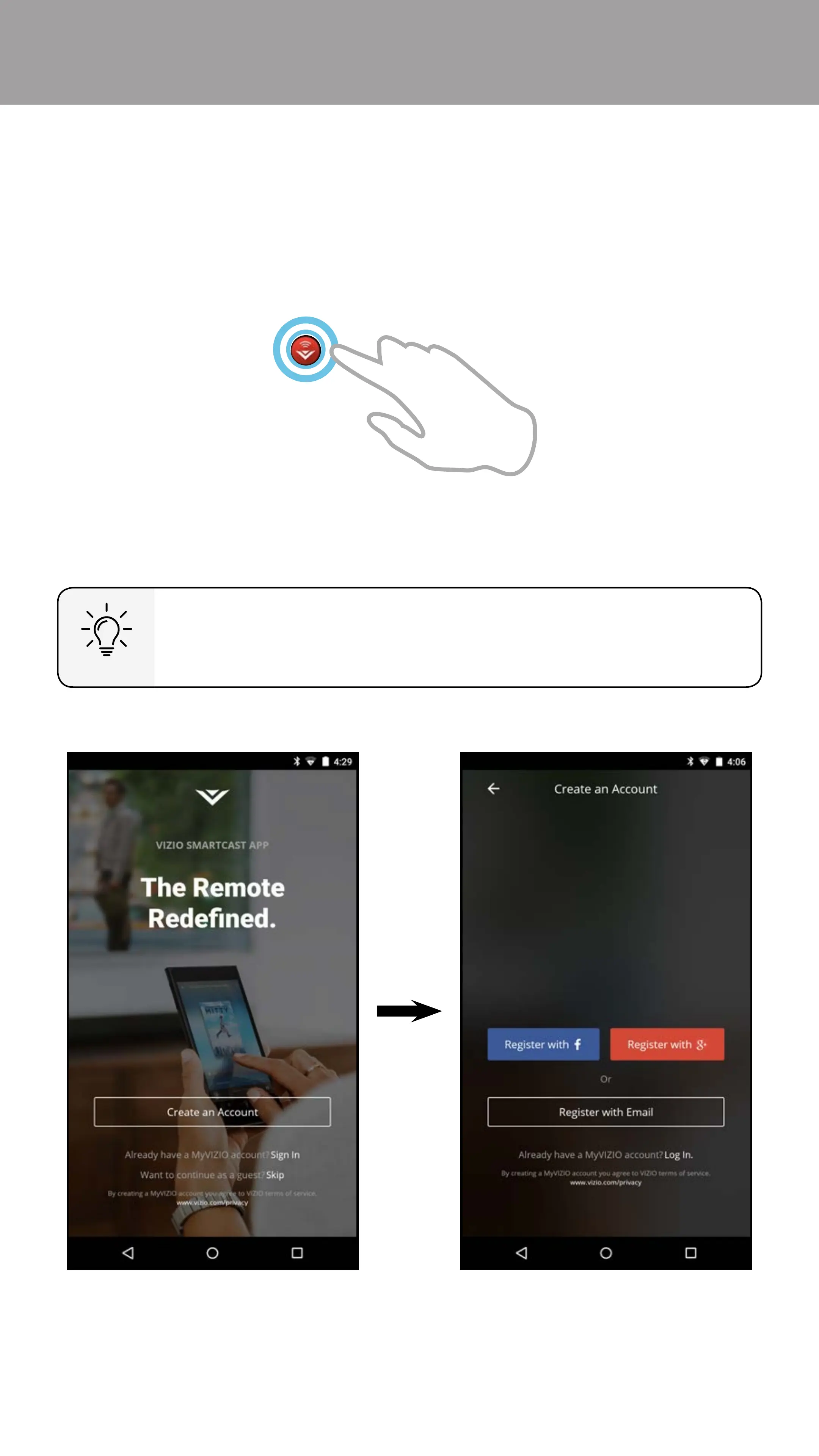 2. Tap Create an Account to register for a MyVIZIO account. Follow the