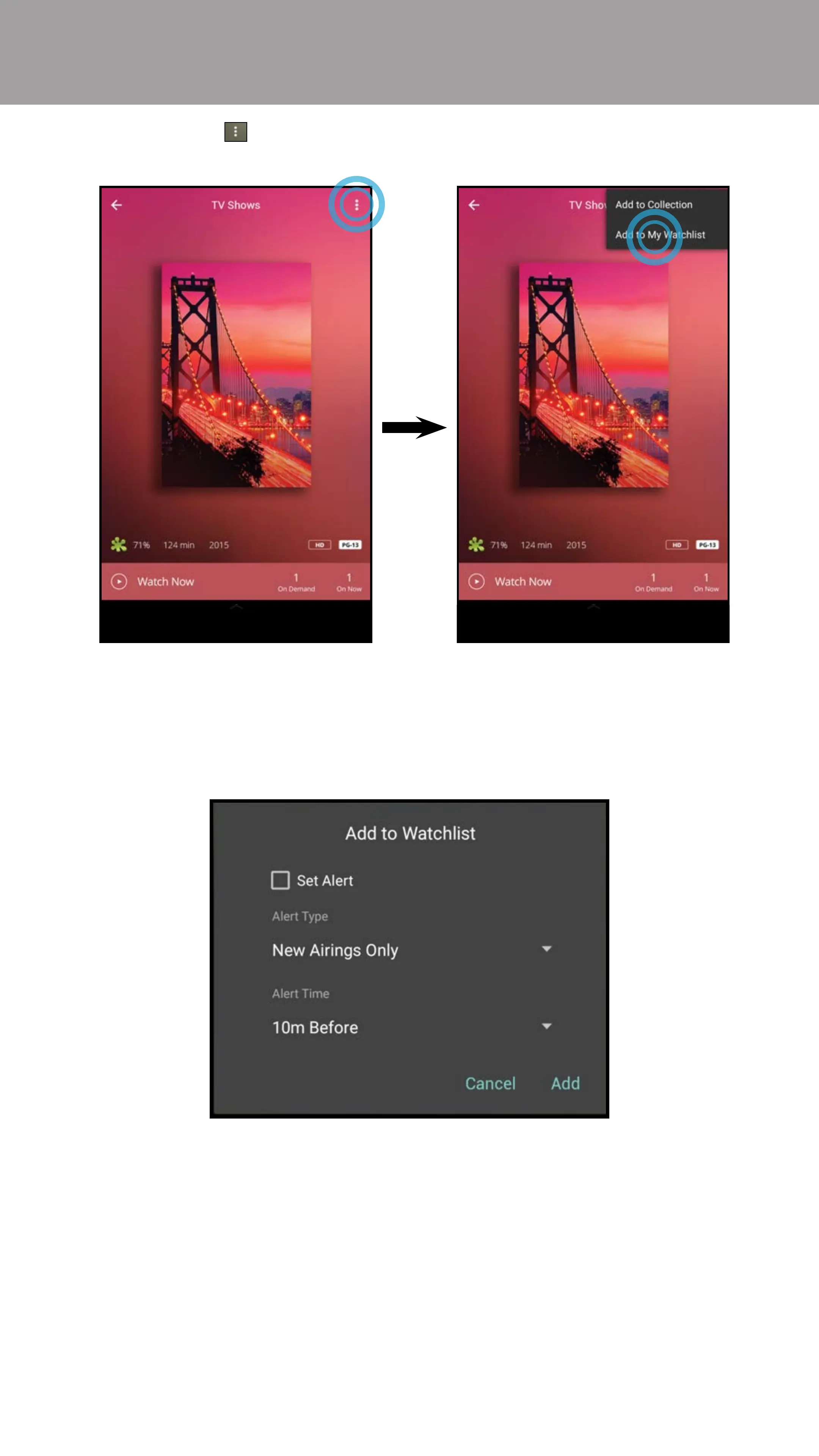 3. Tap on the button and select Add to My Watchlist to add the title to