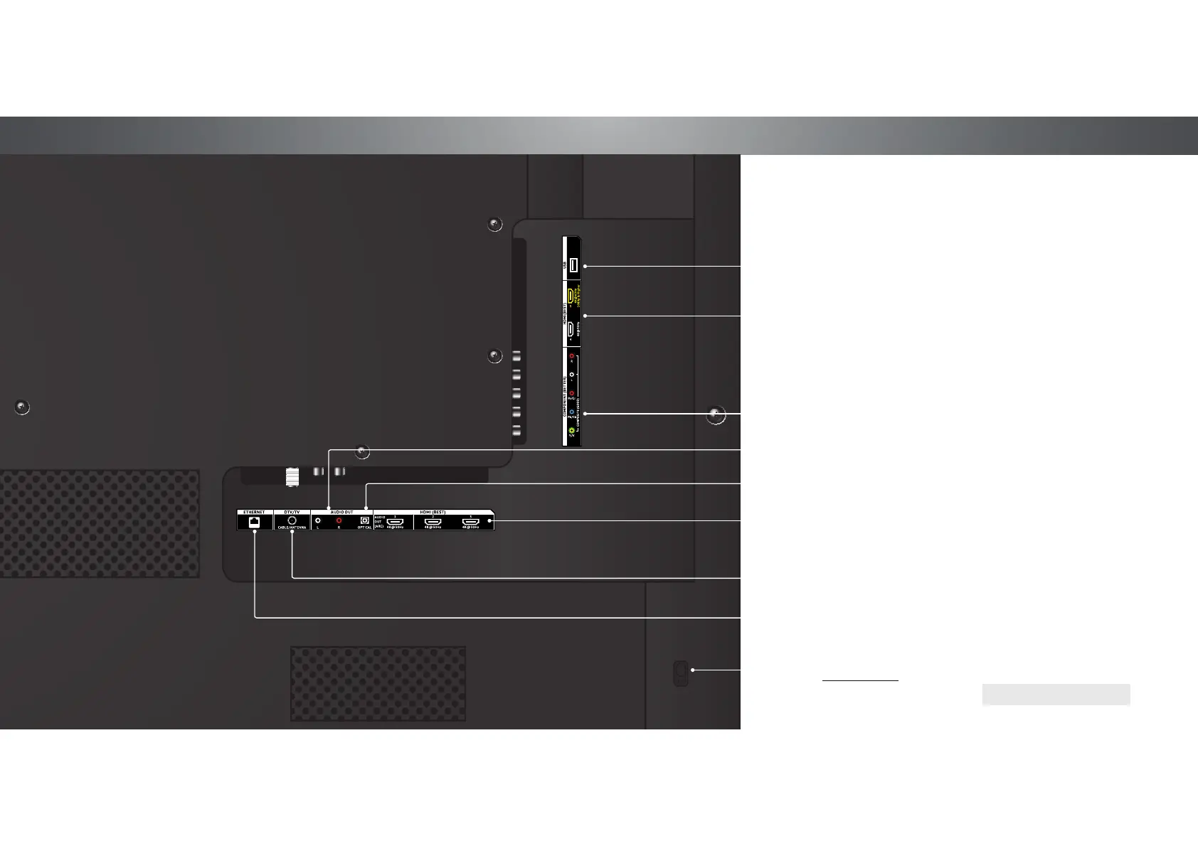 Stereo Audio Out - Connect RCA audio device, such as sound bar.