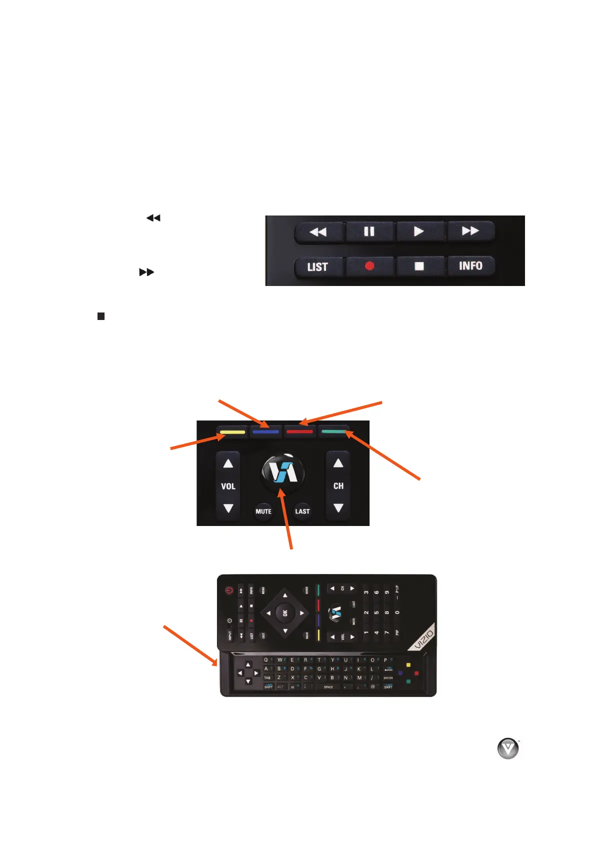 Use these buttons on your remote control to control the VIZIO Internet Apps (VIA) functions on your