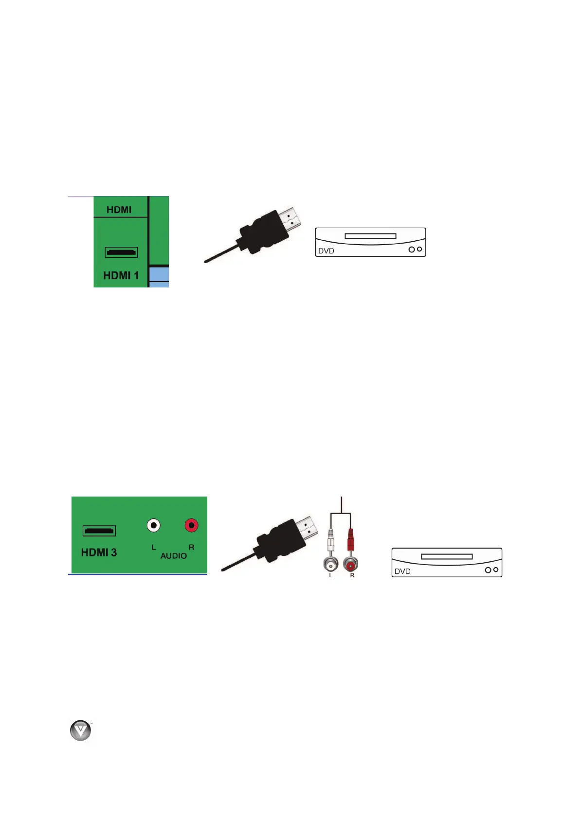 2. Connect a HDMI cable to the HDMI output of your DVD player and the other end to the HDMI 1, 2,