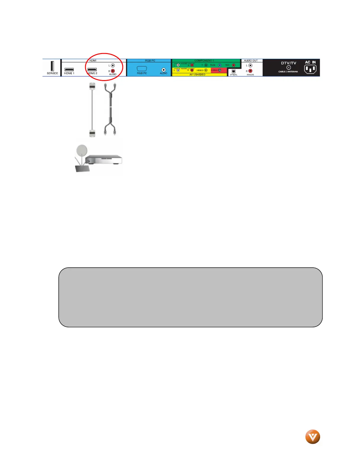 to the HDMI 2 Input (white color area) at the rear of the HDTV.