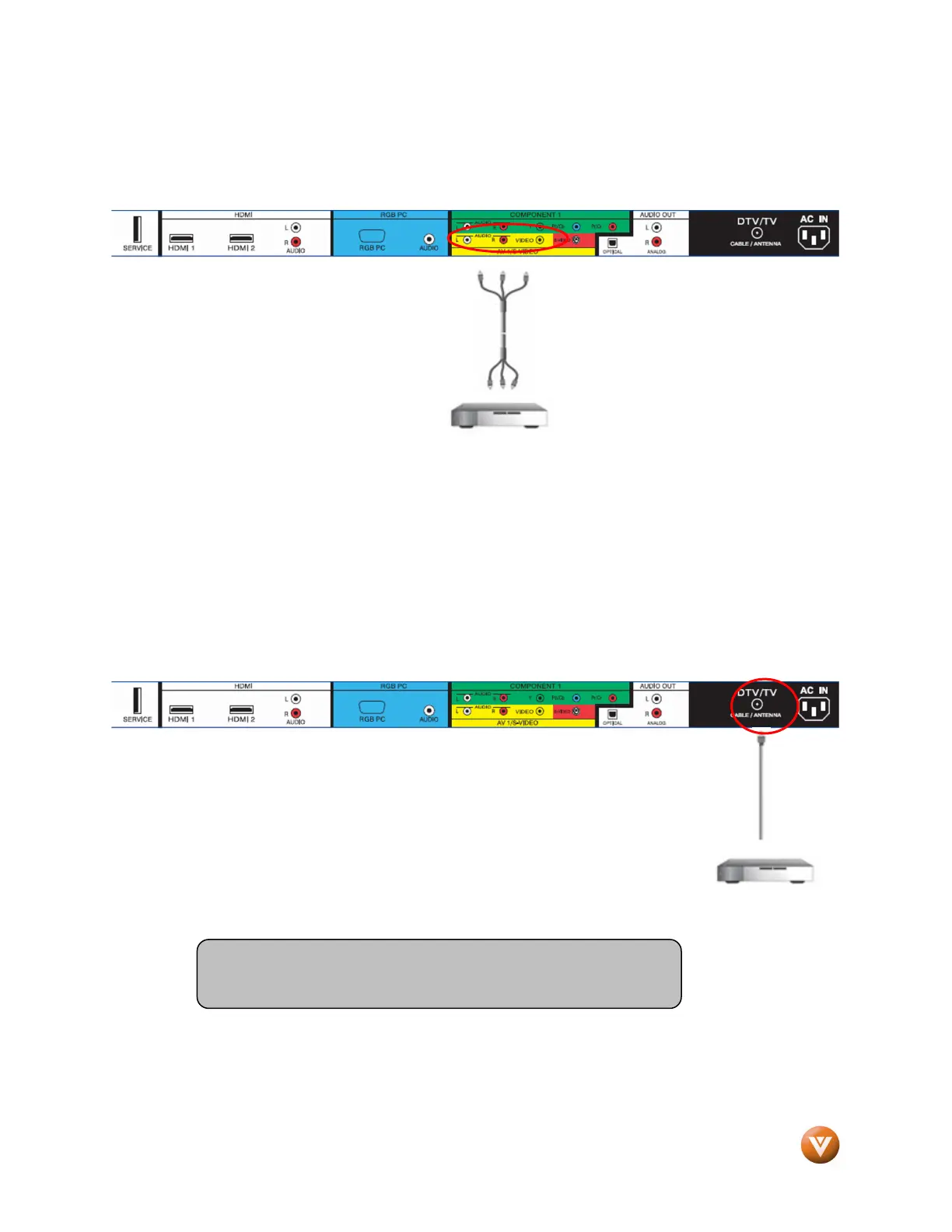 Top Box and the other end to the DTV/TV input at the rear of the HDTV.