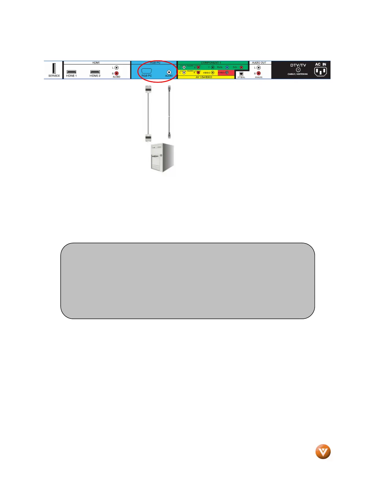 other end to the RGB PC input (blue area) at the rear of the HDTV.