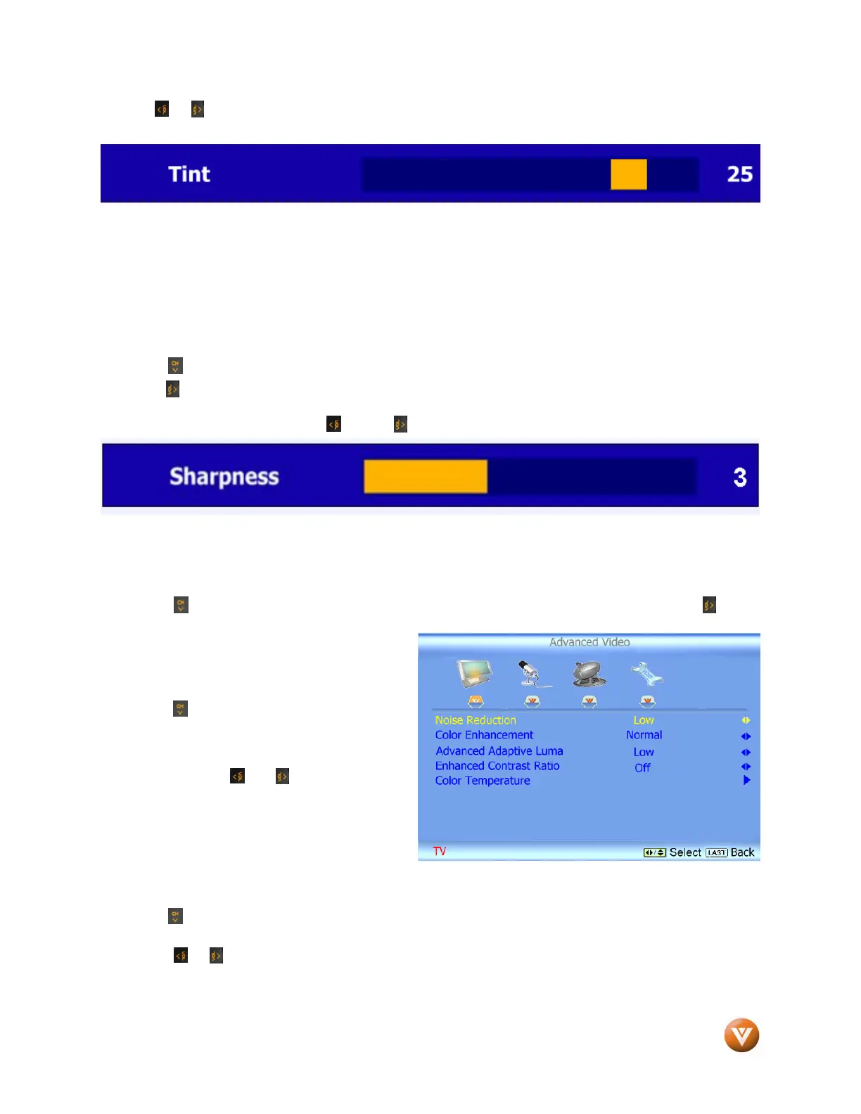 Press the button to highlight the option for Advanced Video selection and press either the button