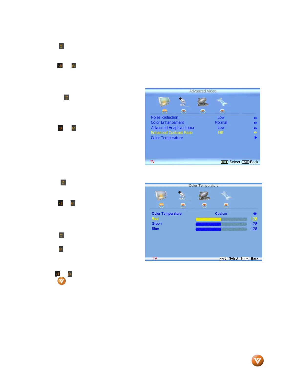 Press the button when finished. Repeat the procedure to adjust the other colors if desired.