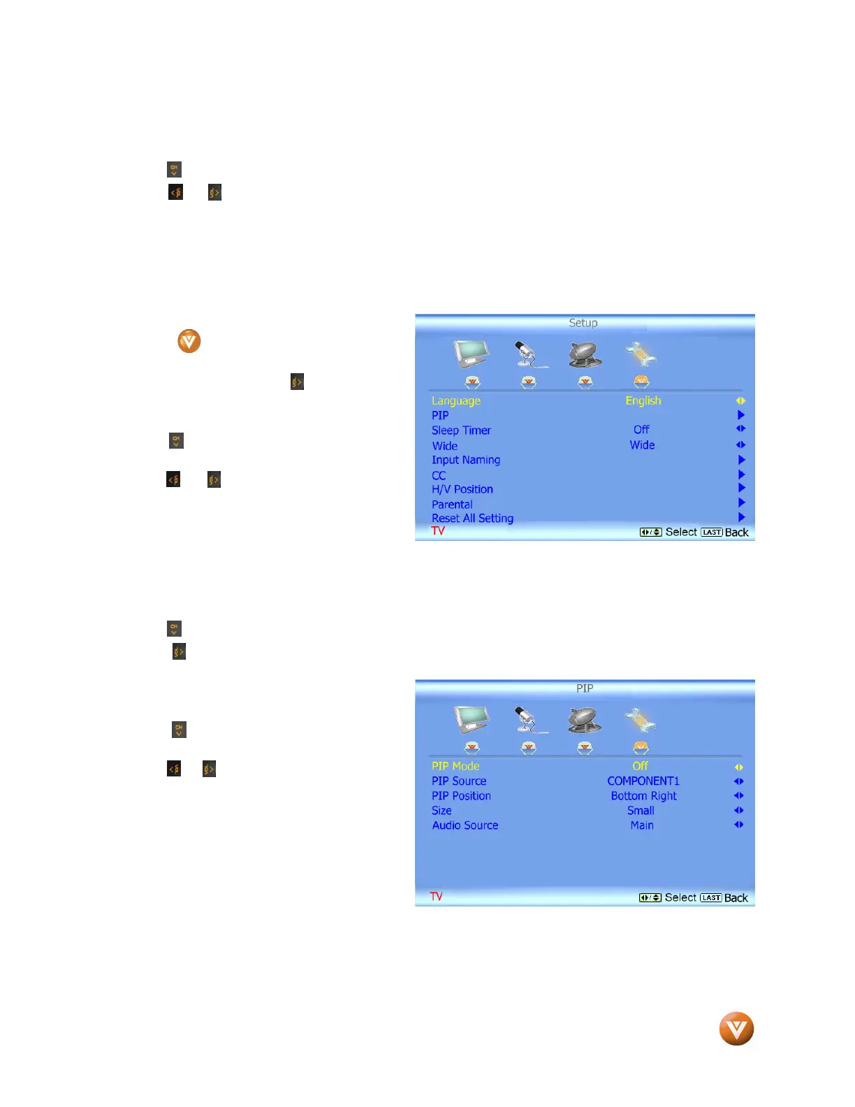 Press the button to highlight the PIP(Picture-in-Picture) selection.