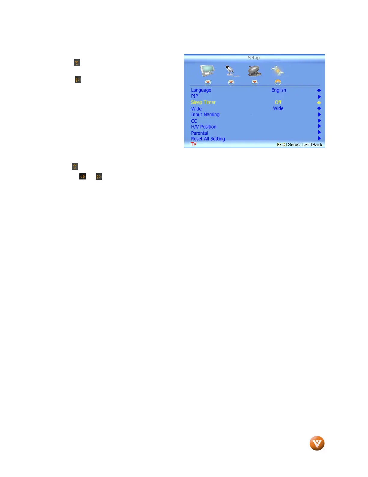 Press the button to highlight the Sleep Timer