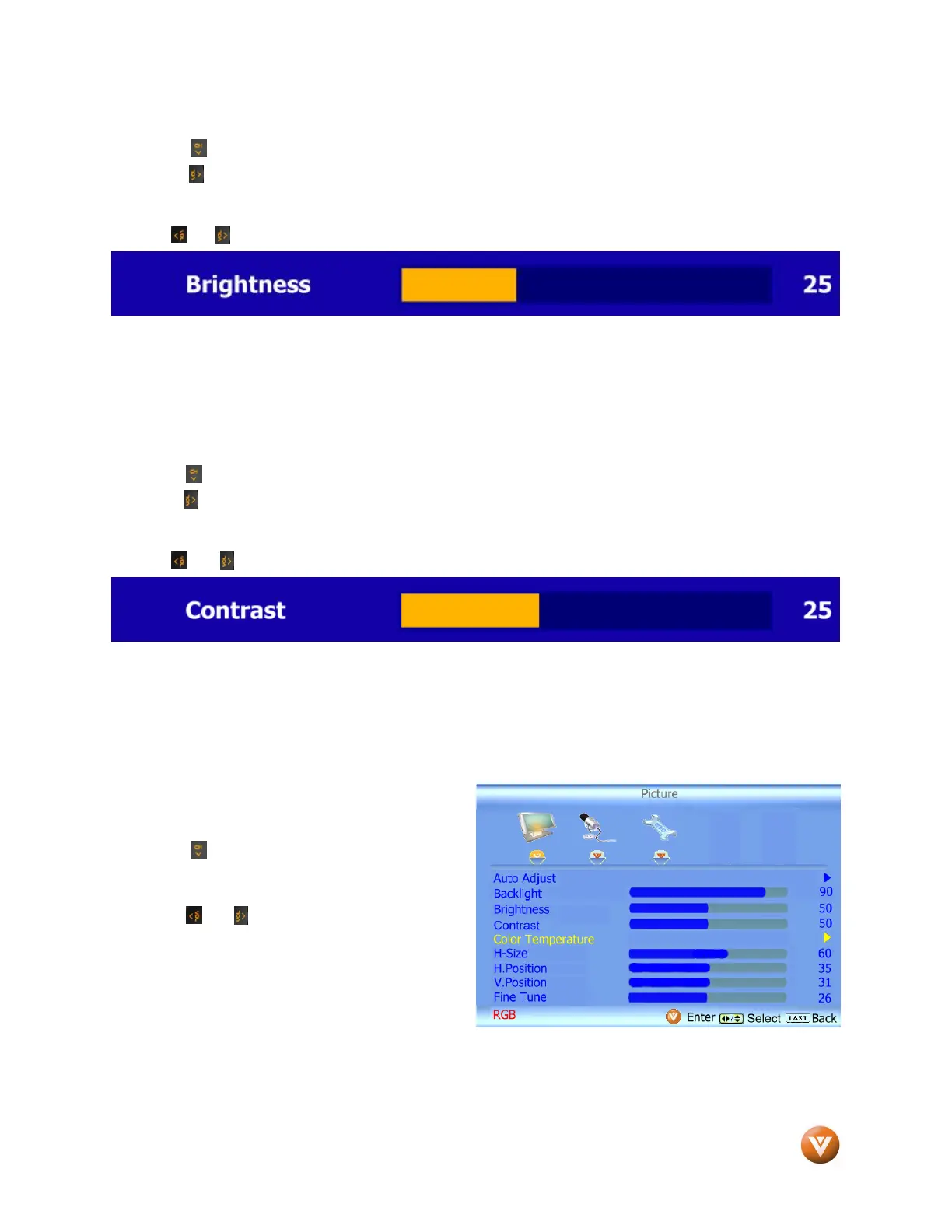 Press the button to start adjusting the contrast and the menu page will disappear and be replaced by