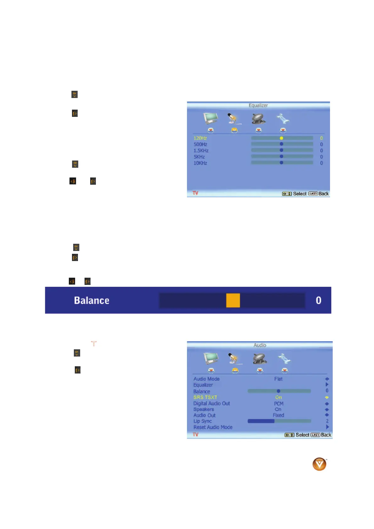 button to start adjusting the balance and the menu page will disappear and be replaced by a