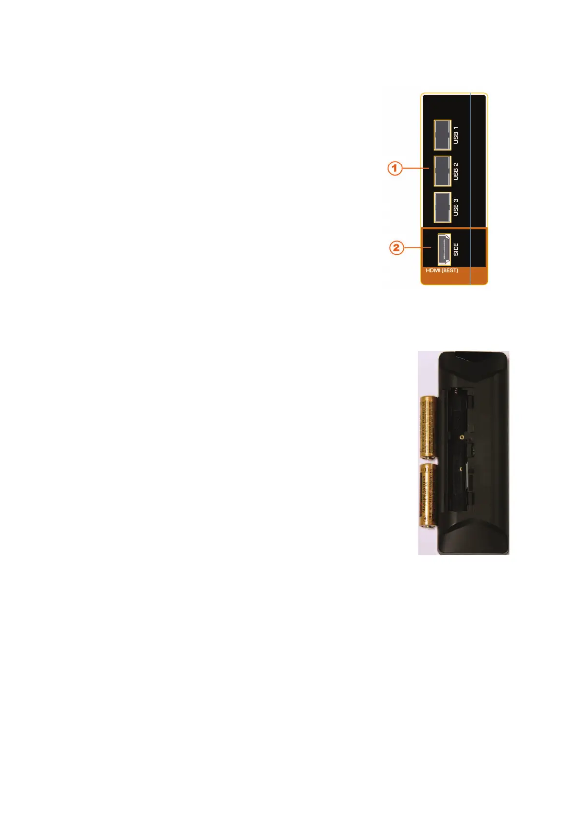 2. HDMI SIDE—Connect digital video devices such as a DVD player or