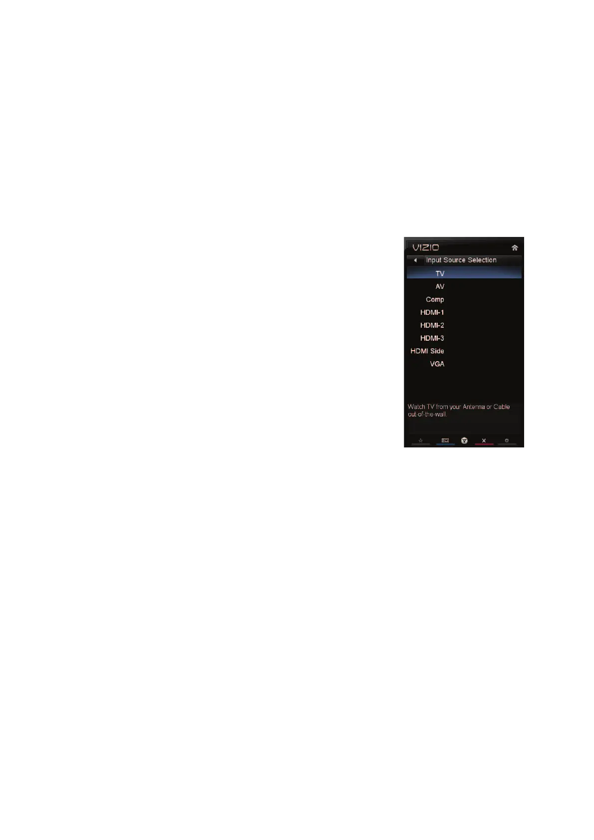 control will cycle through the available inputs. Press the button until the input associated with the device