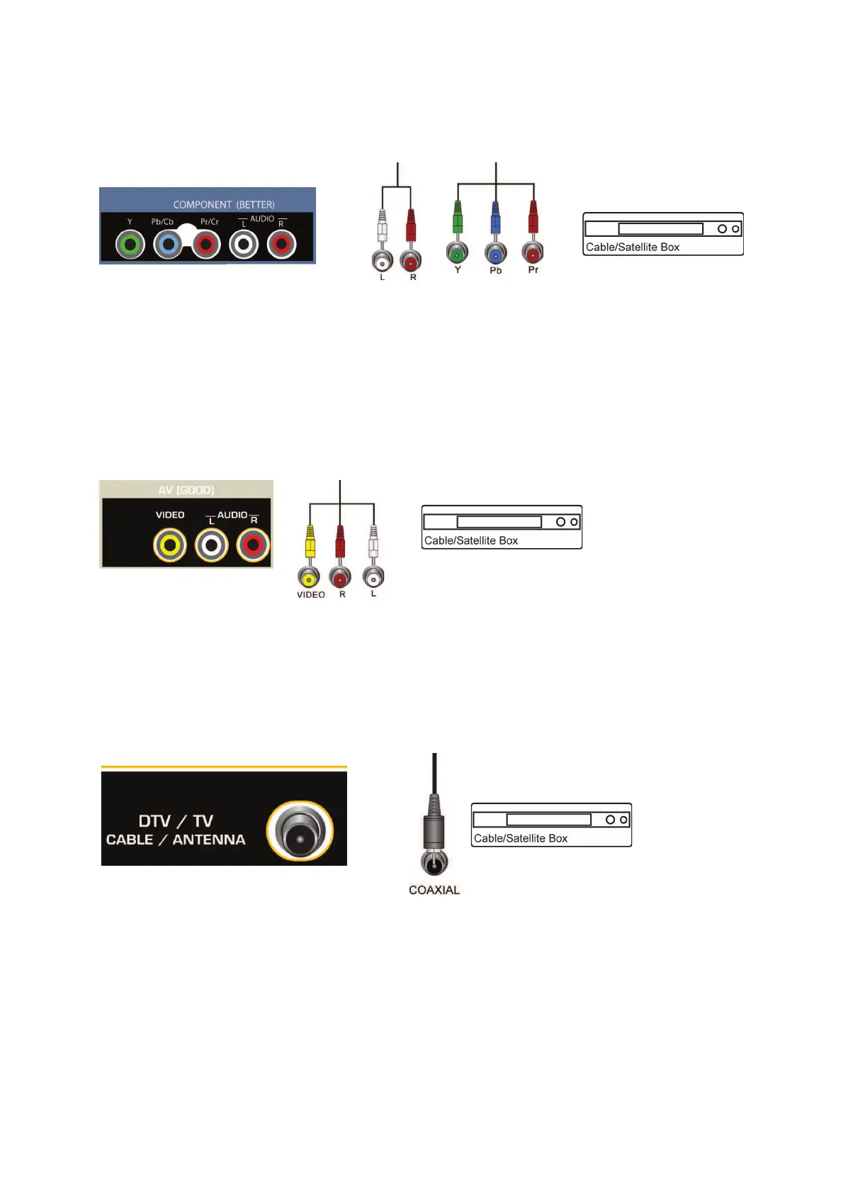 3. Connect the audio cables (white and red) from your Set Top Box to the COMPONENT L and R
