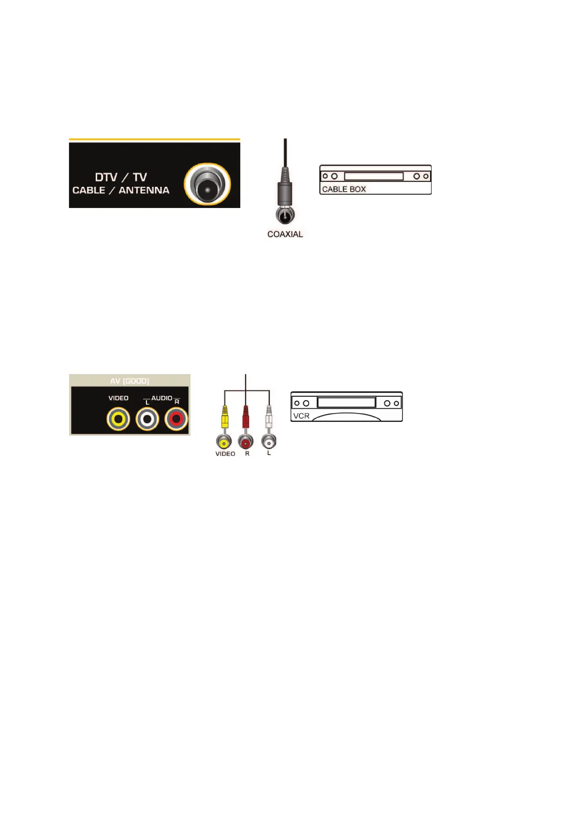 2. Connect the coaxial (RF) connector from your antenna or cable to the DTV/TV