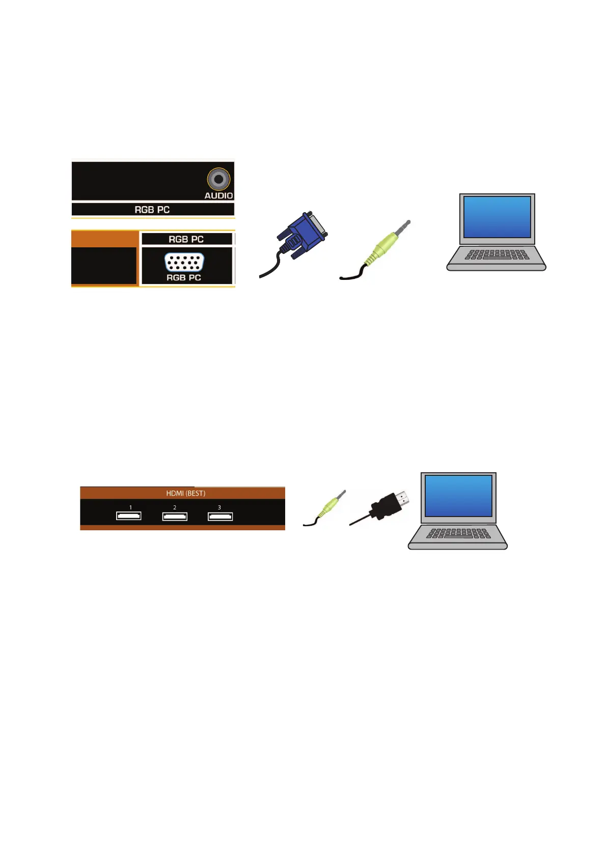 3. Connect the RGB (VGA) cable from your computer to the RGB PC jack on of your HDTV.