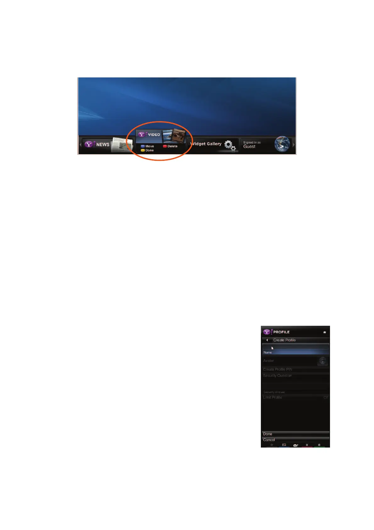 Note: The Widget Gallery, HDTV Settings App, and Profile App cannot be deleted.