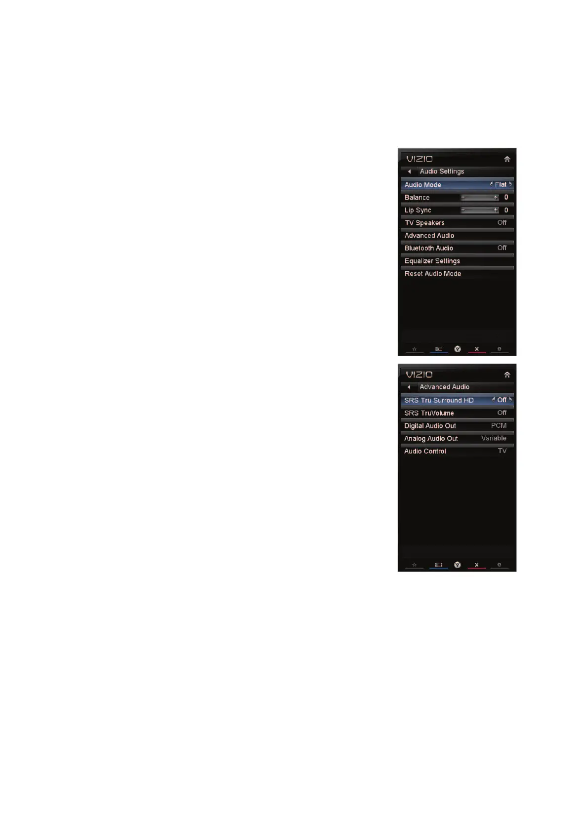 Note: When SRS TruSurround HD is On, Audio Mode selections