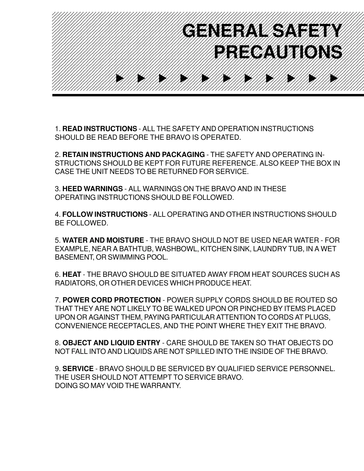 9. SERVICE - BRAVO SHOULD BE SERVICED BY QUALIFIED SERVICE PERSONNEL.