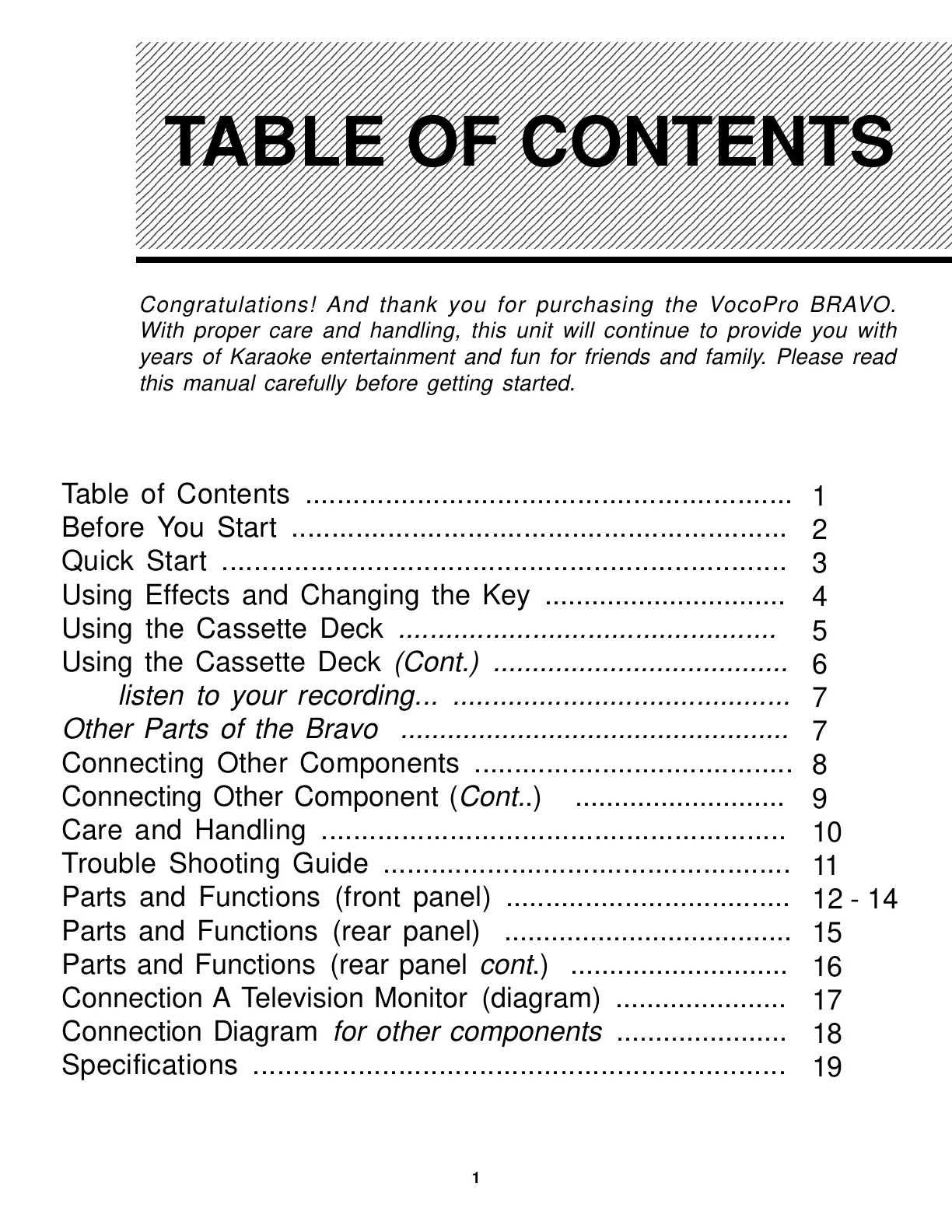 Congratulations! And thank you for purchasing the VocoPro BRAVO.