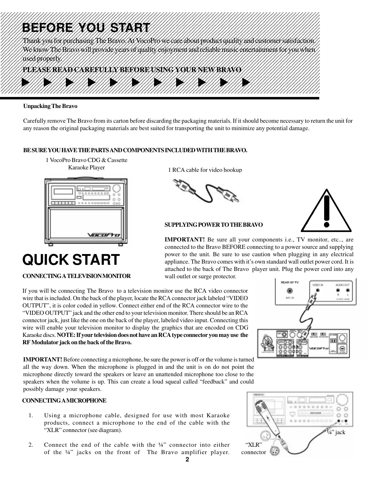 Thank you for purchasing The Bravo. At VocoPro we care about product quality and customer satisfaction.