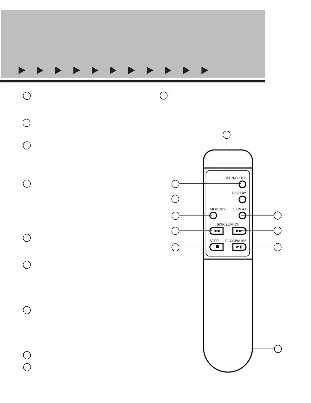 PLAY: Starts and pauses the CD/CDG player. Press once to