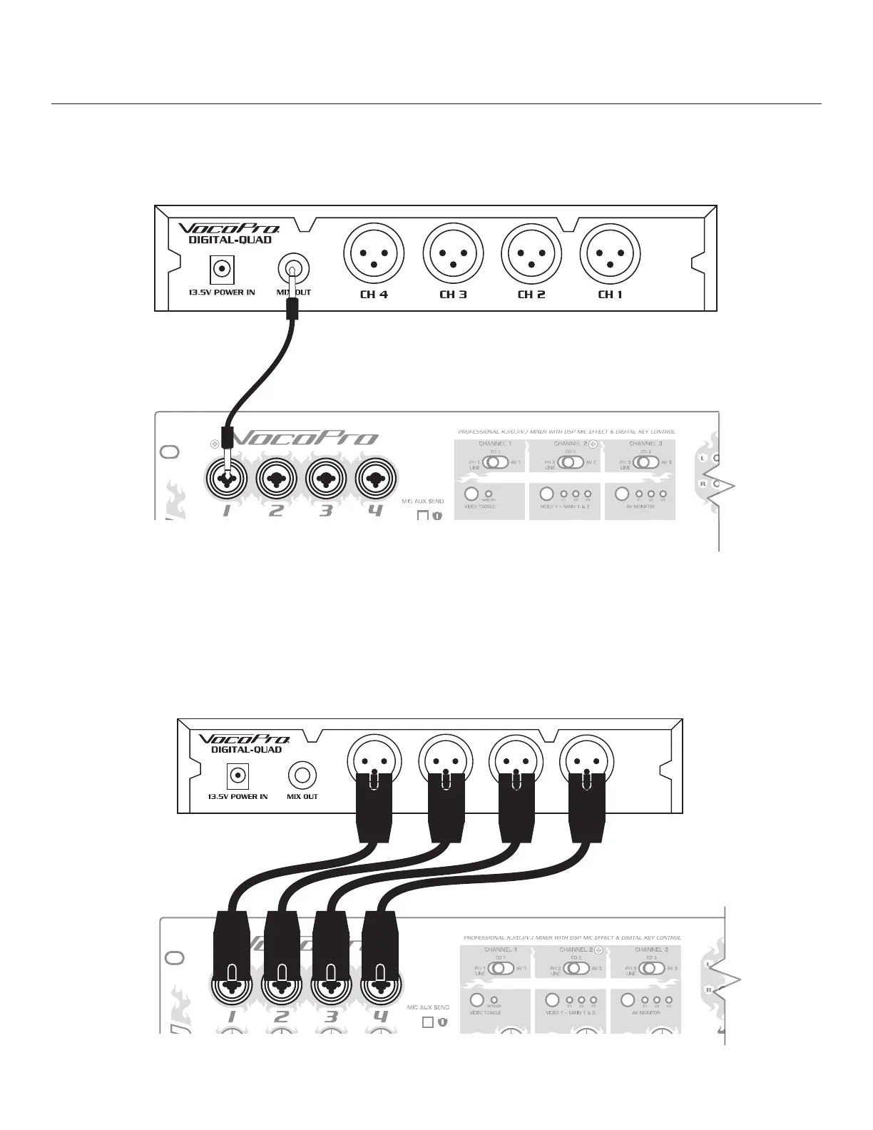 • Connect each end of the XLR cables into individual microphone input jacks on a mixer/ampli er to be used