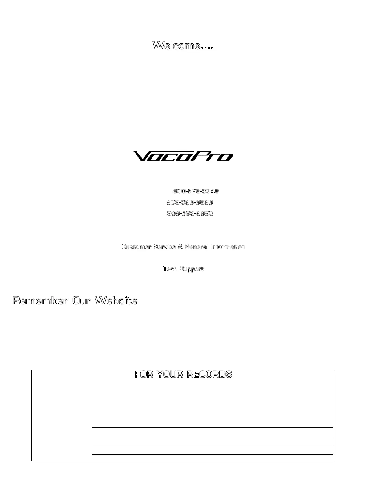 Be sure to visit the VocoPro website, WWW.VOCOPRO.COM, for the latest information on new products, packages and promo’s. And