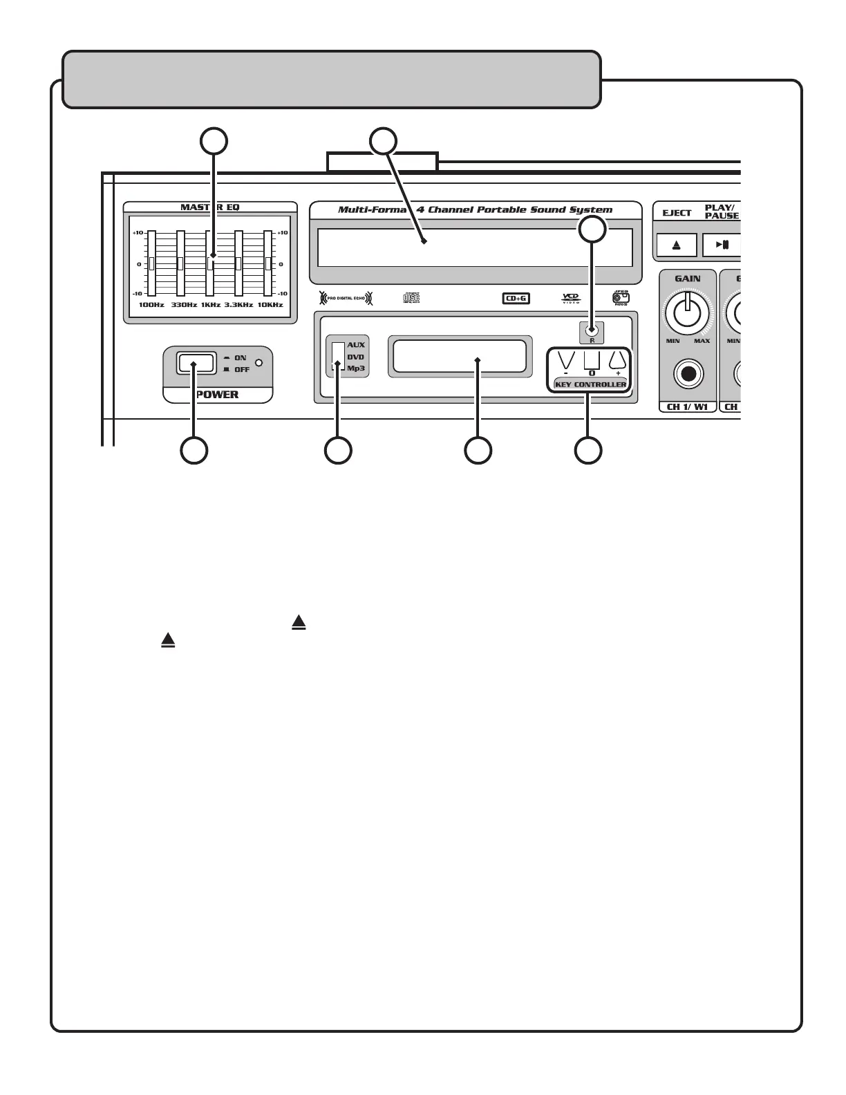 1. Graphic Equalizer Control - This GRAPHIC EQ is used to BOOST and/or CUT particular frequencies. Each slide