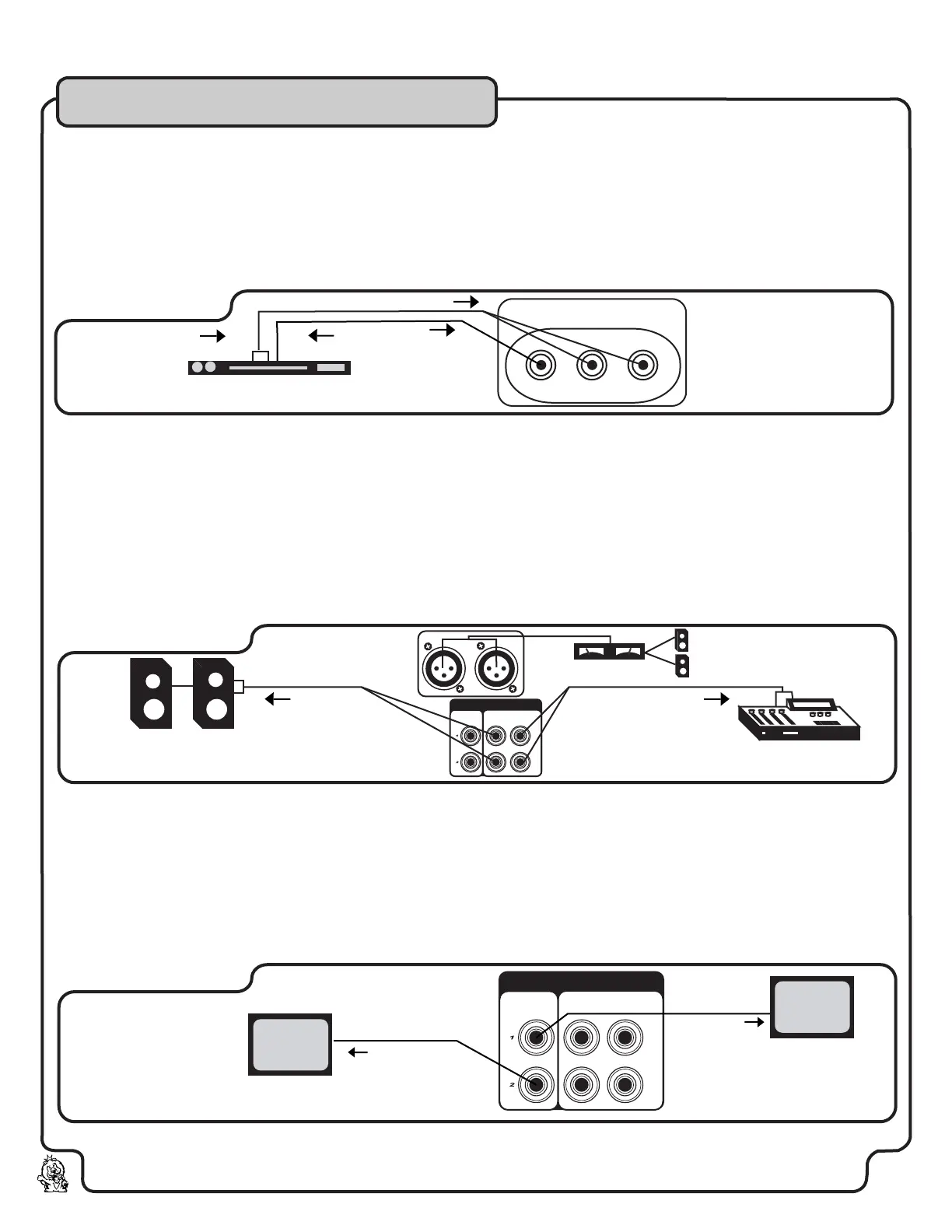 For AUDIO, connect the L and R AUDIO OUTPUT jacks from the source player to the L (white) and R (red) AUDIO INPUT jacks on the GIG MAN, using
